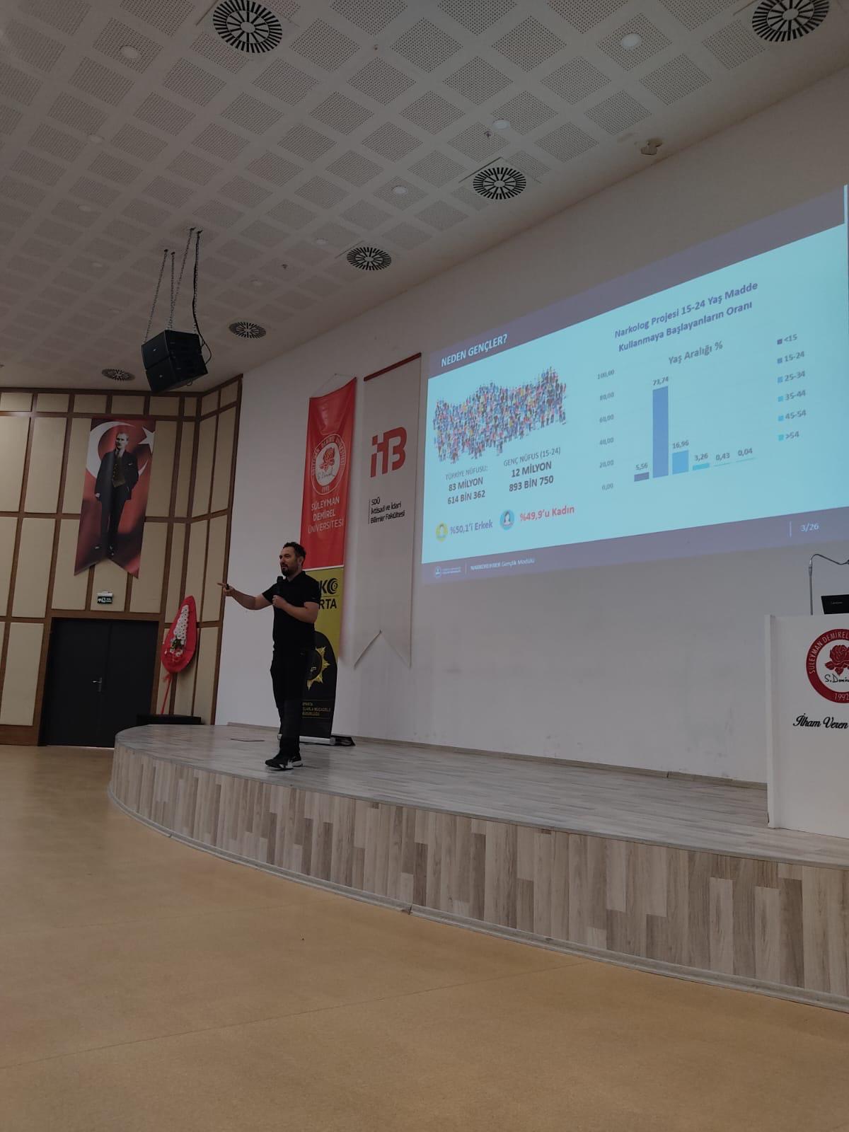 Süleyman Demirel University Faculty of Sport Sciences actively participated in the orientation training program on combating addiction, organized as part of the 2025-2026 Academic Year. This important event, held for first-year students of the faculty, aimed to support young people in leading a healthy university life.