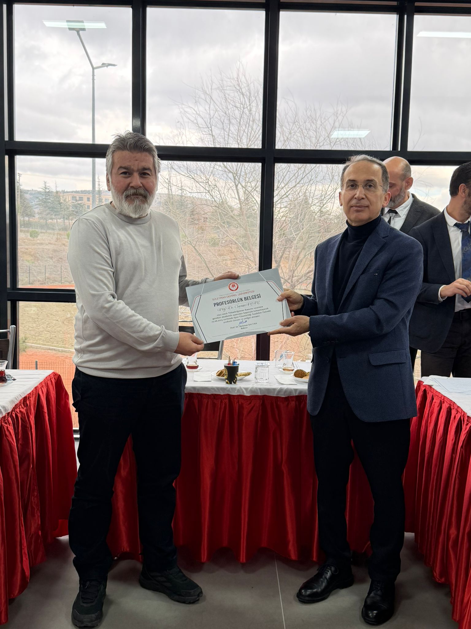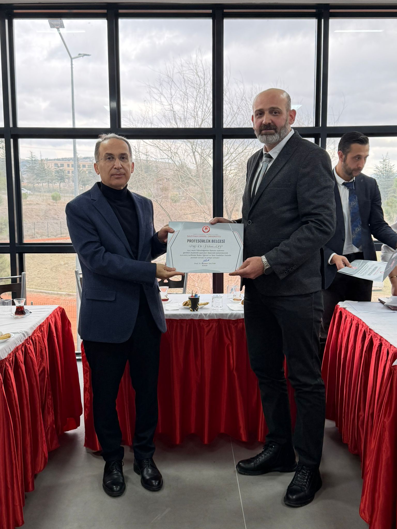 Fakültemiz Akademik Kurul Toplantısı, Rektörümüz Prof. Dr. Mehmet Saltan’ın katılımıyla gerçekleştirildi. Toplantı, Dekan Prof. Dr. Hulusi Alp tarafından açılarak fakültenin mevcut durumu, yürütülen çalışmalar ve planlanan akademik faaliyetlere ilişkin genel bilgilendirmelerde bulunuldu. Toplantı kapsamında, geçmiş dönemde dekan yardımcılığı görevini yürüten Dr. Öğr. Üyesi Emrah Yılmaz’a katkılarından dolayı plaket takdim edildi. Ayrıca Prof. Dr. kadrolarına atanan Prof. Dr. Osman Pepe, Prof. Dr. Tahir Kılıç, Prof. Dr. Mehmet Kumartaşlı ve Prof. Dr. Hulusi Alp’e profesörlük belgeleri Rektörümüz tarafından takdim edildi. Toplantının devamında Beden Eğitimi ve Spor alanındaki akreditasyon süreçleri değerlendirilirken; TÜBİTAK öğrenci projeleri ile toplumsal sorumluluk projeleri ele alındı. Bunun yanı sıra ders talepleri, ÖZYES başvuru süreçleri hakkında bilgilendirme yapıldı ve öğretim üyeleri atama ile yükseltme kriterleri değerlendirildi. Akademik Kurul Toplantısı, görüş ve önerilerin paylaşılmasının ardından dilek ve temennilerin dile getirilmesiyle sona erdi.